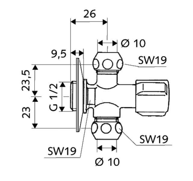 SCHELL DVOSTRUKI KUTNI VENTIL 1/2x3/8x3/8” gumica